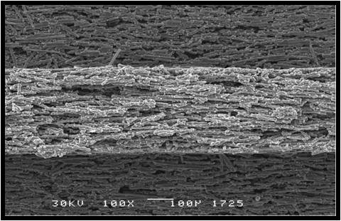 Our CLM-based filters look more like what you would expect to see in typical low temperature filter media for air or water such as in a clothes dyer or coffee maker. Fibers have long been the filter media material of choice, except in high temperature ceramics where GEO2’s patented fiber-based extruded honeycombs are the first. The fibrous interconnected pore structure of CLM filters allows air to flow easily through the material, whereas traditional high temperature filters are powder-based with more restrictive flow paths. In addition, the overlapping fiber structure provides uncompromised strength and trapping efficiency even at high porosity.